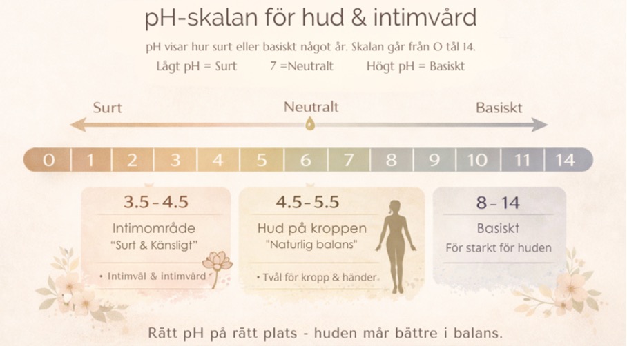 Kroppen är smart och har olika behov på olika platser. Det gäller även när det kommer till rengöring. En viktig del i detta är hudens pH-värde, som beskriver hur surt eller basiskt huden är. Huden mår bäst när den är svagt sur, eftersom det stärker hudens naturliga skyddsbarriär.